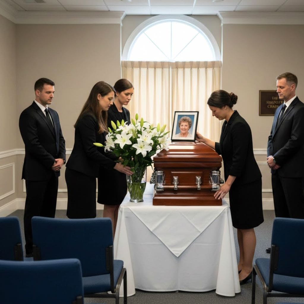 Inside the funeral home, everything moved slowly. Soft beige walls, folded programs, and the faint scent of lilies.