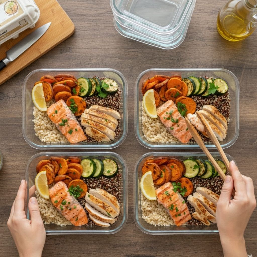 For lunch, I often prepared bowls that included brown rice or quinoa, roasted vegetables such as zucchini or sweet potatoes, and a protein source like grilled chicken, salmon, or lentils.